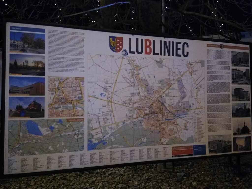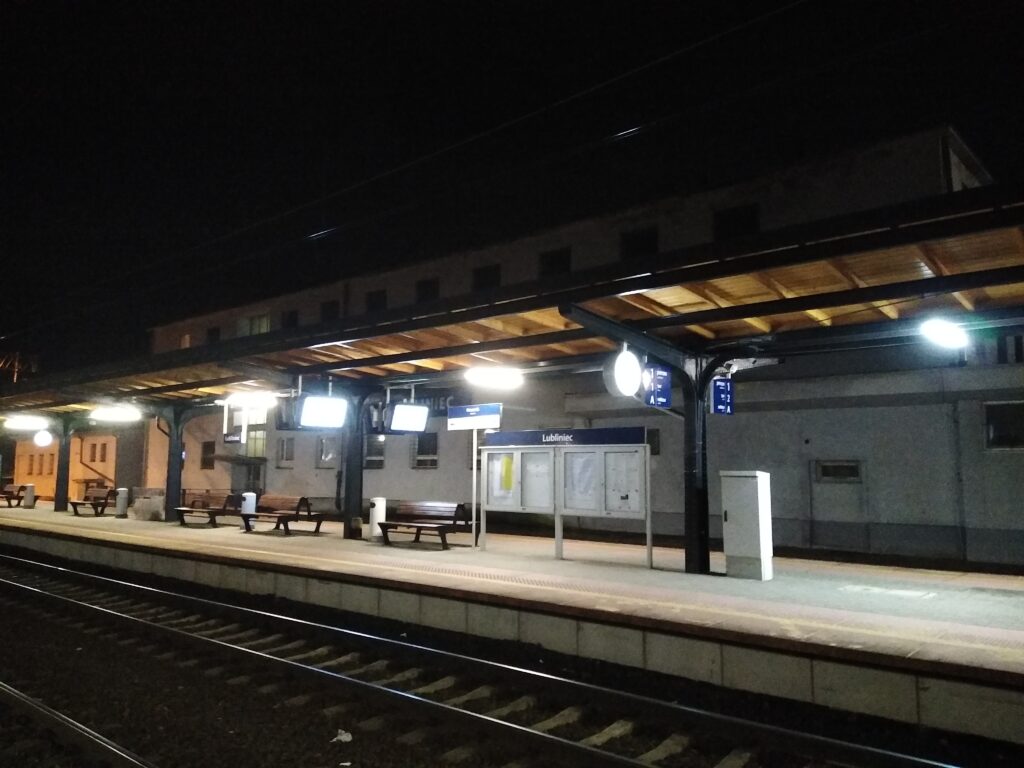 Ostatnie miasto, które odwiedziłem 16 stycznia 2022 roku, było Lubliniec. Dotarłem tam pociągiem REGIO z Kalet. Było już ciemno, ale to nie utrudniło zwiedzanie mi miasta. Po sesji zdjęciowej na dworcu PKP poszedłem w kierunku centrum miasta. Potem podszedłem zobaczyć zamek w Lublińcu, tam teraz znajduje się hotel. Było dość zimno w Lublińcu, więc wróciłem na dworzec PKP. Musiałem się skryć przed zimnem. Około godziny dziewiętnastej pojechałem pociągiem REGIO do Katowic, a stamtąd odjechałem pociągiem do Gdańska. Tam przez całą noc rozmawiałem z byłym marynarzem z Kalisza, ale przez całą próbował udowodnić mi swoją rację.  Po powrocie do Gdańska z samego rana była burza i niedaleko mnie uderzył piorun.
