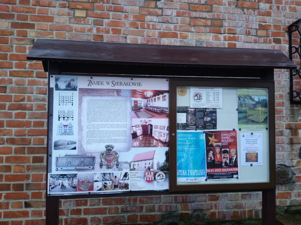 Po Pniewach przyszła kolej na Sieraków. Około godziny dziewiątej dotarłem do tego miasteczka. Wysiadłem w centrum miasteczka, następnie poszedłem zrobić sobie zakupy na podróż. Po zakupach poszedłem w kierunku byłego dworca PKP, a tam mogłem zobaczyć drezynę. Robiłem tak zdjęcia, żeby mieszkańcy tego budynku mnie nie widzieli. Niemniej jednak cieszyłem się, że na tym zamkniętym odcinku można jechać drezyną po okolicach Sierakowa. Z dworca poszedłem dalej do zamku. Zwiedziłem teren wokół zamku, a następnie poszedłem w kierunku rynku, bo pojechać dalej autobusem do Międzychodu.