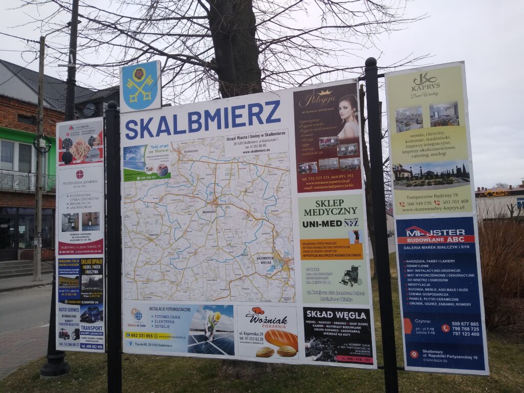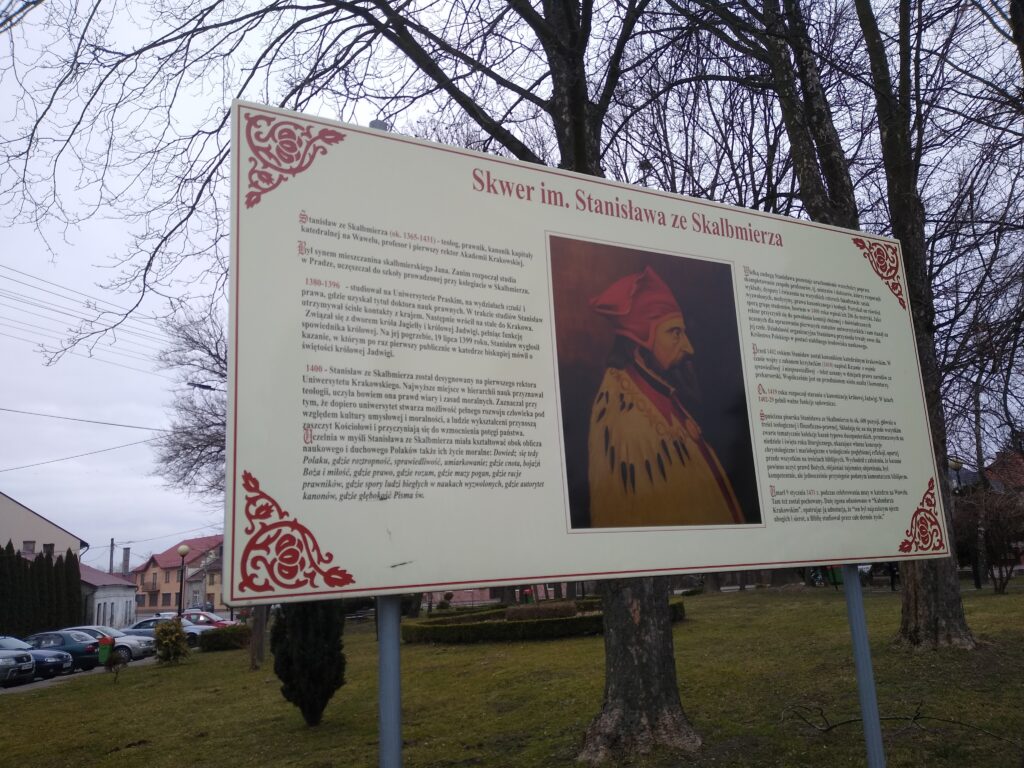 Najstarszy źródłowy przekaz o Skalbmierzu pochodzi z 1217 roku. W tym okresie w miejscu obecnego Skalbmierza istniała osada, przez którą przebiegał prastary szlak handlowy. Prowadził on z ziem niemieckich przez Wrocław do Krakowa, Sandomierza i dalej aż na Ruś. Podczas wojny domowej, ok. 1234 roku Konrad I Mazowiecki przejął Skalbmierz i inkastelizował kościół. 20 lutego 1342 na Zamku Królewskim w Krakowie król Kazimierz Wielki wydał dokument lokacyjny miasta Skalbmierza na prawie średzkim. Rozwój miasta został zahamowany w XVII wieku. Powodem hamowania rozwoju miasta były pożary, szczególnie dotkliwy był ten w 1618 roku, następnie epidemia dżumy, a wreszcie potop szwedzki i najazdy Węgrów oraz Kozaków. Następne ożywienie miasta nastąpiło dopiero w II połowie XVIII wieku. Skalbmierz utracił prawa miejskie w 1870 roku. Odzyskanie przez Polskę niepodległości w 1918 roku przebudziło miejscowych działaczy społecznych do czynienia starań o odzyskanie przez Skalbmierz praw miejskich. W nocy z 6 na 7 września 1939 roku Skalbmierz był świadkiem krwawego boju 2 Pułku Strzelców Podhalańskich z niemieckim zagonem pancernym. 5 sierpnia 1944 roku oddziały niemiecko-ukraińskie dokonały pacyfikacji miasta.